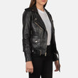 Your inner biker spirit is calling LETHARA Alison Black Leather Biker Jacket, expertly crafted from durable cowhide leather with a semi-aniline finish. The jacket boasts a classic notch collar, complemented by zippered cuffs and a full zipper closure for a sleek look. It also features a removable belt, allowing you to customize your fit and style. Shoulder epaulettes and gussets add a touch of rugged flair, while the quilted polyester lining provides warmth and comfort. With three zippered outside pockets and a small coin pocket, this jacket is as functional as it is stylish, making it the perfect addition to your outerwear collection.