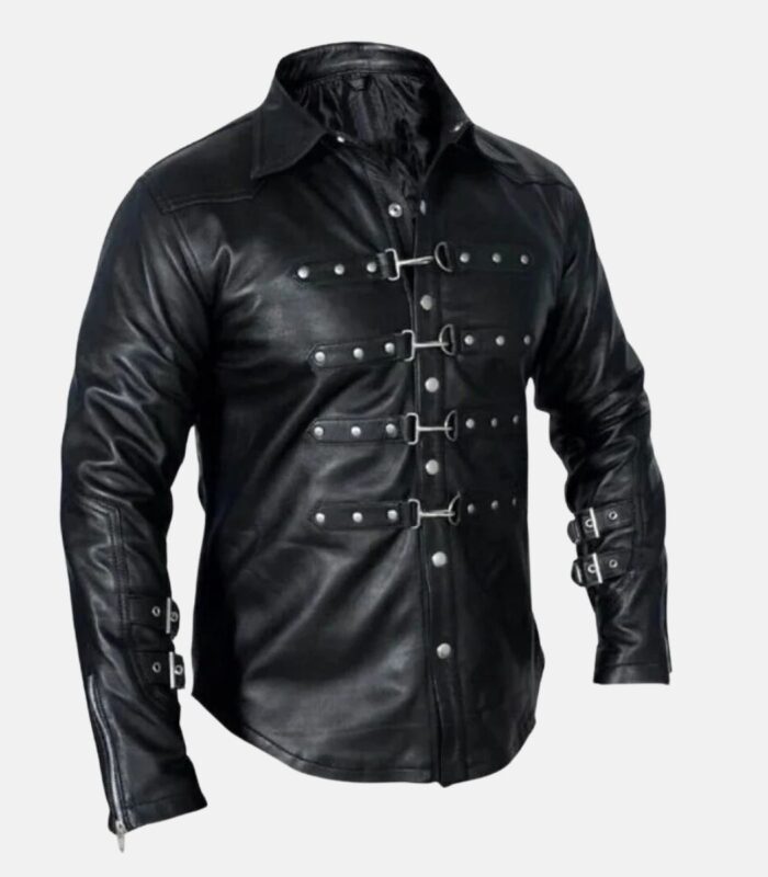 - Buckled Shirt Front & Arms: The unique buckled shirt Front and arms design adds a modern, edgy touch to the classic leather shirt.