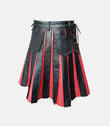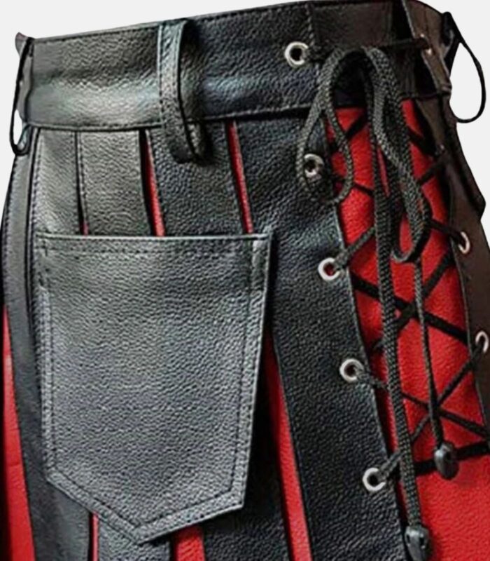 Introducing LETHARA Black & Red Leather Kilt—a perfect balance of tradition and edgy modern style. Crafted from high-quality leather, this kilt features a striking red and black colour scheme, with intricate side lacing from waist to pocket that enhances its distinctive look. Designed for versatility and comfort, this kilt includes both front and back pockets, making it as functional as it is fashionable. This kilt is the ultimate wardrobe upgrade.