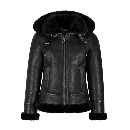 Classic Black B3 Bomber Jacket with Shearling Adjustable Hood