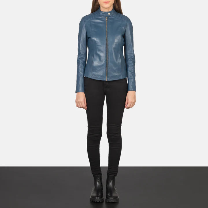 Introducing LETHARA Classic Blue Sheepskin Leather Biker Jacket, with contemporary elegance. Crafted from soft sheepskin leather, this jacket features a semi-aniline finish that enhances its natural texture. The band collar with a snap button and zippered cuffs add a sleek and modern touch, while the quilted shoulders bring an extra element of style. The inner quilted polyester lining keeps you cozy, making it perfect for layering. With two outside pockets for convenience, this jacket is the perfect blend of style and practicality ideal for any urban adventure.