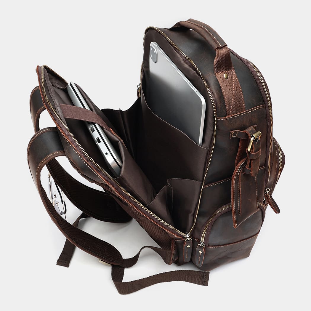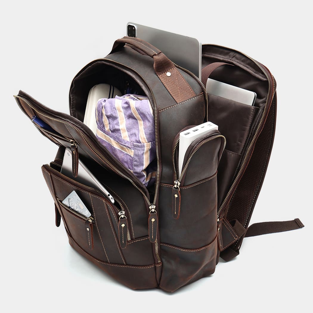 The "LETHARA Classic Brown Leather Backpack" redefines functionality with style. Handcrafted from premium top-grain cowhide leather, this backpack is designed to be your perfect companion for work, travel, or daily adventures. Its thoughtful design offers spacious compartments, a padded laptop sleeve, and easy-access pockets, making it as practical as it is stylish. Whether you're navigating a busy commute or exploring new destinations, this durable leather backpack ensures you're prepared for it all in timeless elegance.