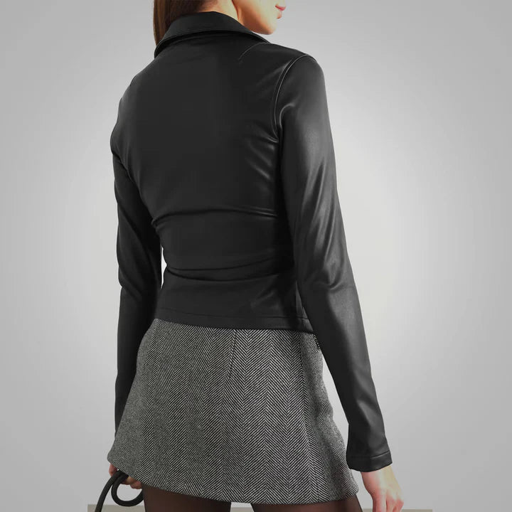Meet your new go-to essential—the Classic Slim Fit LETHARA Leather Shirt. This shirt is made from smooth, high-quality leather and designed with a front button closure for a refined, streamlined appearance. Its tailored collar gives it a polished look, while the slim fit hugs your curves for a sleek silhouette. Ideal for layering or wearing on its own, this simple yet stylish leather shirt is adding a hint of luxury to your everyday wardrobe.
