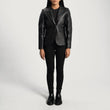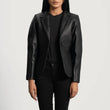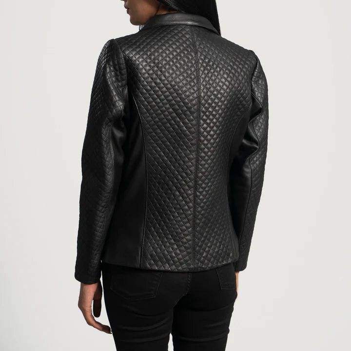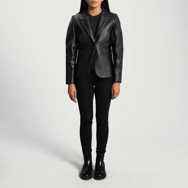Victoria Aniline-Finished Leather Blazer with Quilted Accents