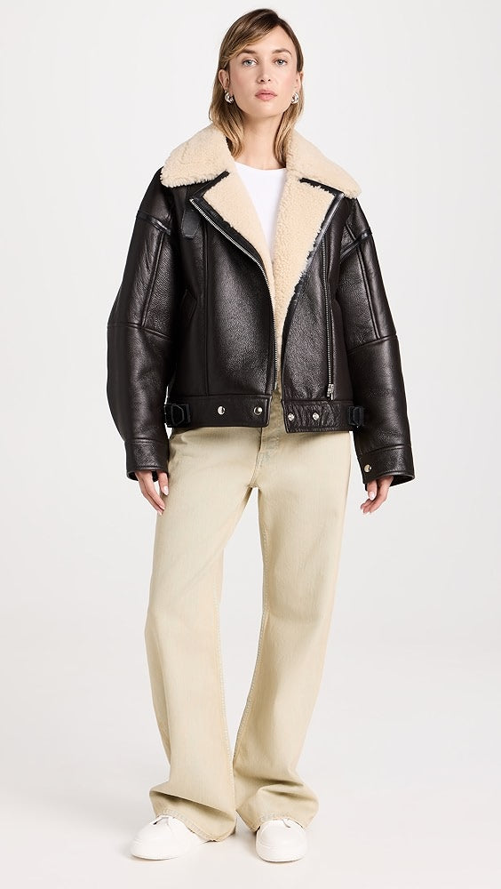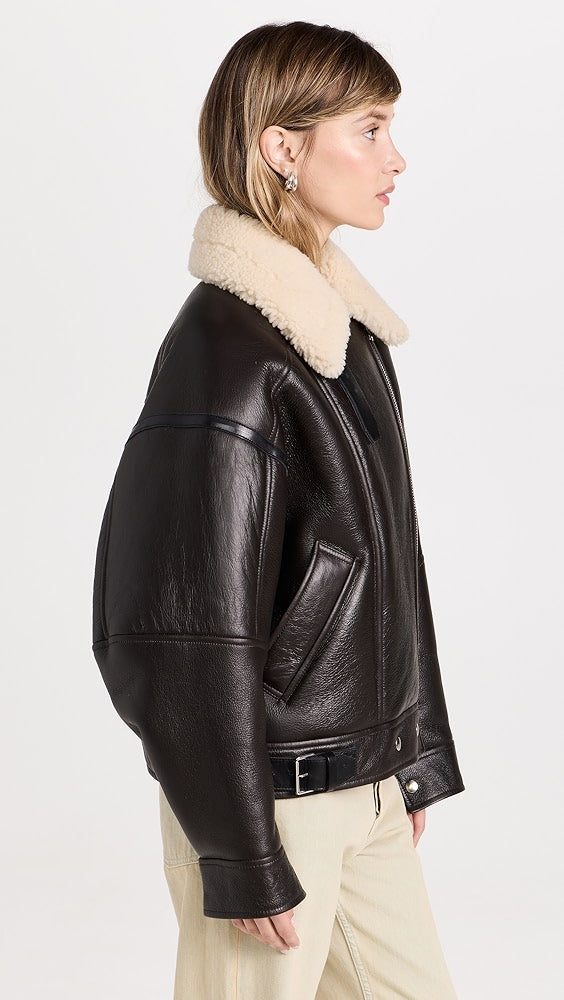 - Premium Shearling Leather: Crafted from high-quality shearling leather, offering warmth and durability.