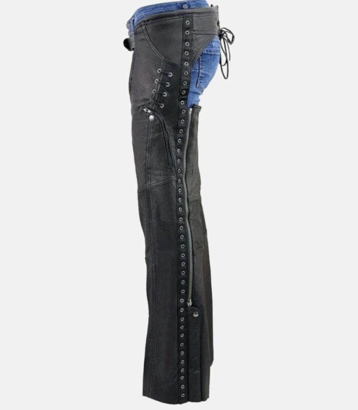 Durable Black Leather Chaps with Adjustable Belt & YKK Zippers