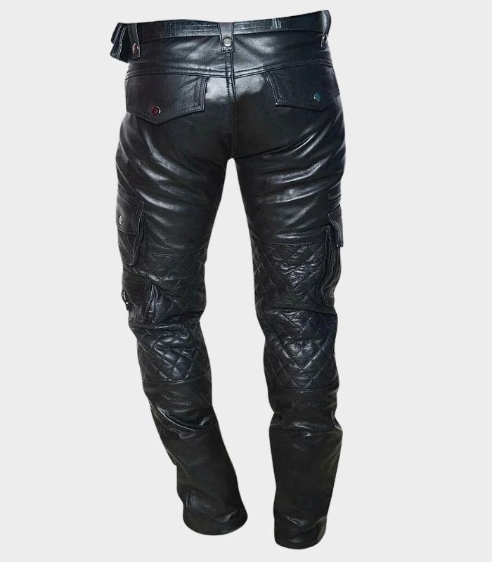 Genuine Leather Men’s Cargo Trouser Pant with Stylish Quilted Details