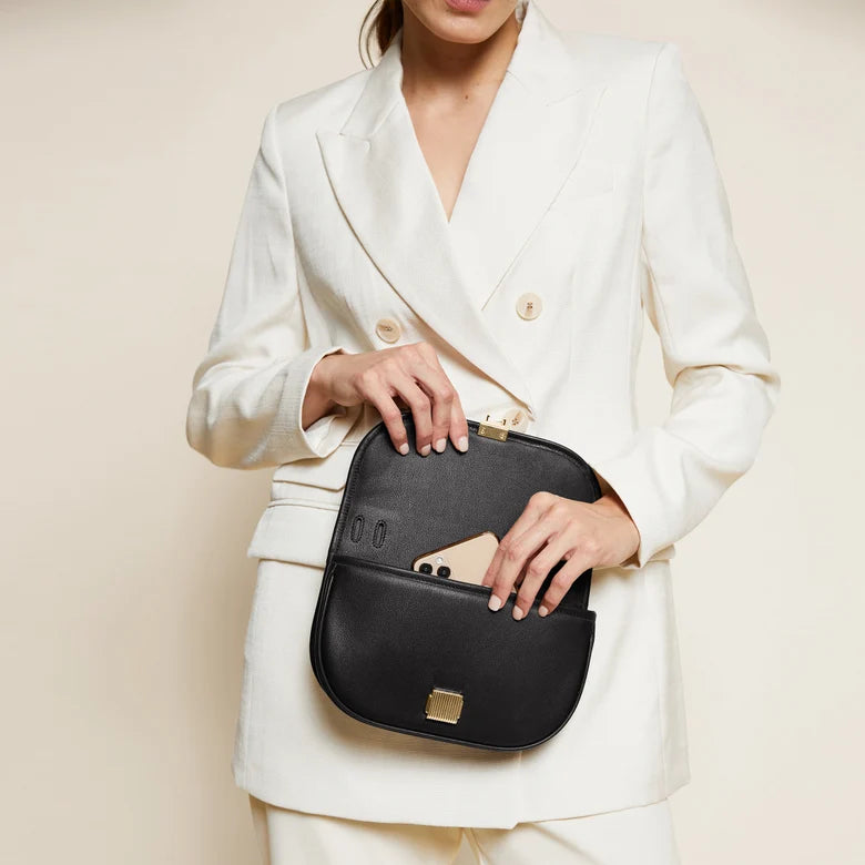 Compact yet sophisticated, Lethara "Katy Small Saddle Crossbody" is your go-to bag for every occasion. Its full-grain leather construction exudes timeless charm, while features like an accessible main compartment, built-in card slots, and a detachable strap offer unmatched versatility. Use it as a clutch or a crossbody to suit your mood and style.