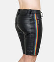 Leather Shorts with Cow Aniline Finish & Vibrant Strips