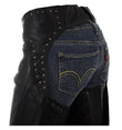 • Studded Detailing: Stylish stud accents add a touch of edge to the classic leather chap.