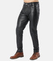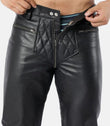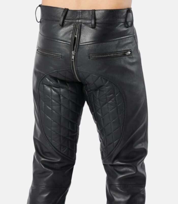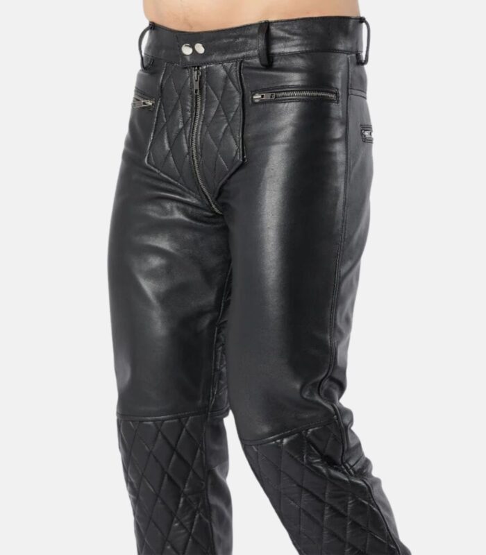Men Slim Fit Quilted Leather Pants with Front & Back Zipper Closure