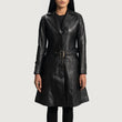 Moonlight Sheepskin Black Leather Trench Coat with Quilted Lining
