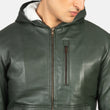 LETHARA Nordic Green Hooded Leather Bomber Jacket combines rugged charm with refined craftsmanship. Made from real sheepskin leather with a semi-aniline finish, this jacket features a fully fleece-lined interior for added warmth. The zippered closure and hooded collar provide a contemporary edge, while the snap button cuffs ensure a secure fit. With multiple pockets for convenience, this bomber jacket is designed for men who value both fashion and practicality.