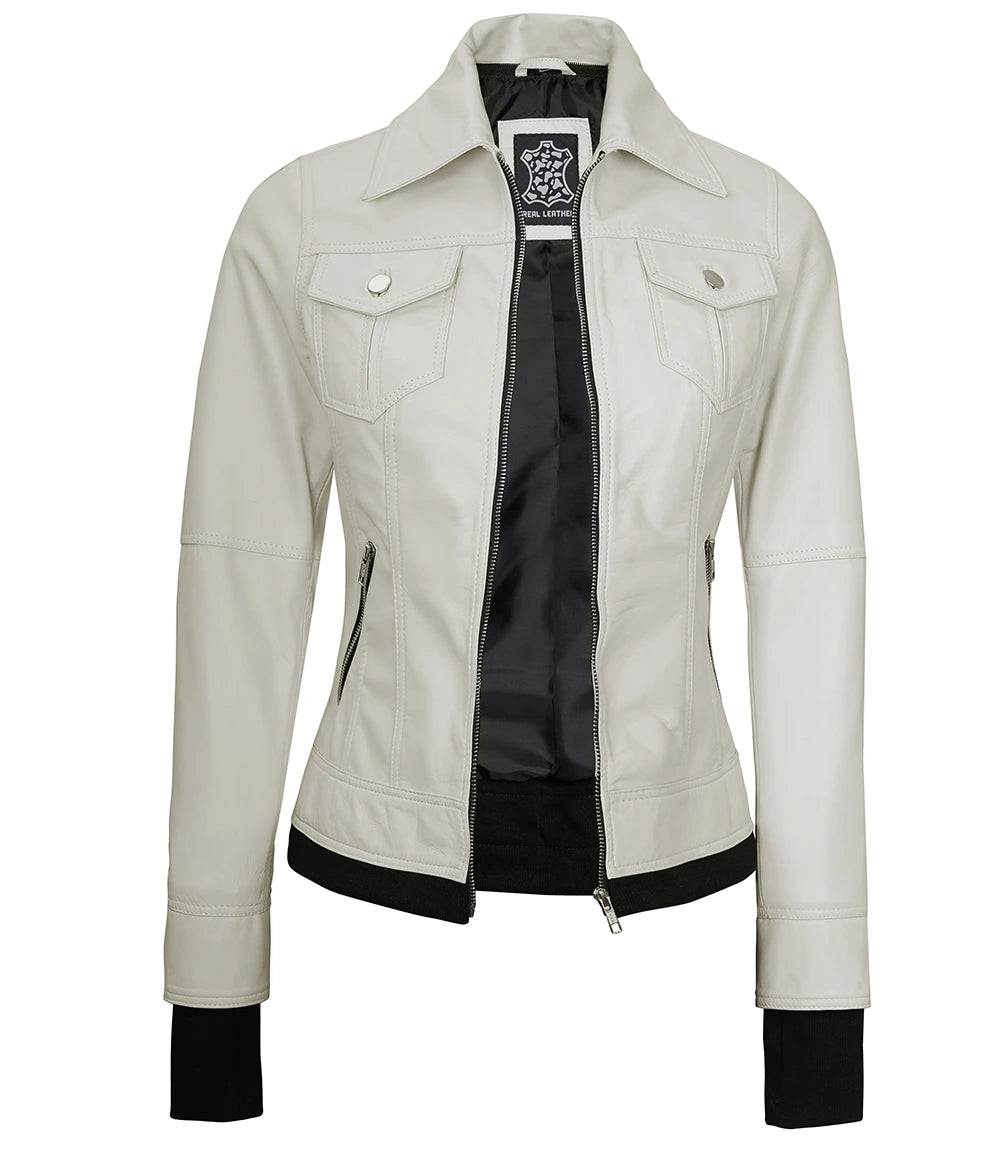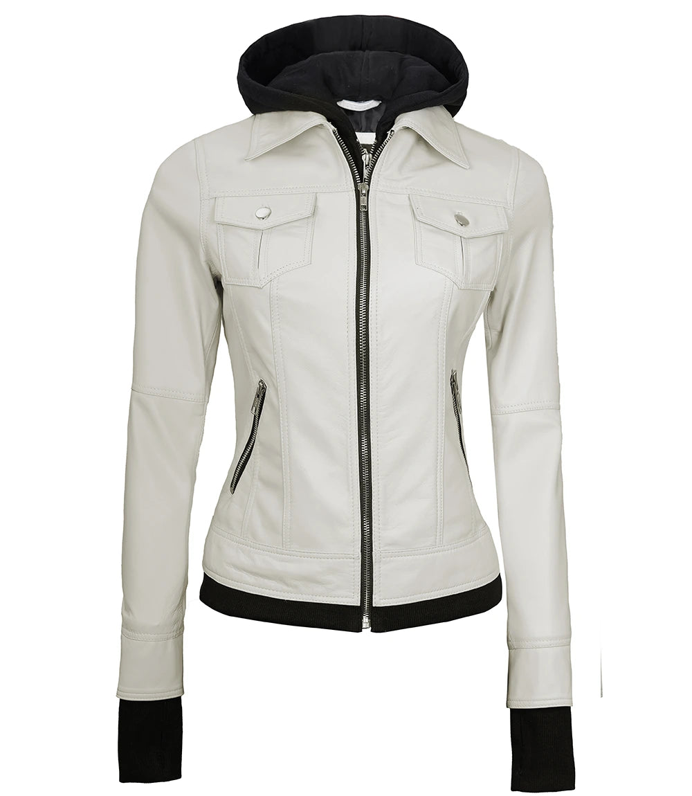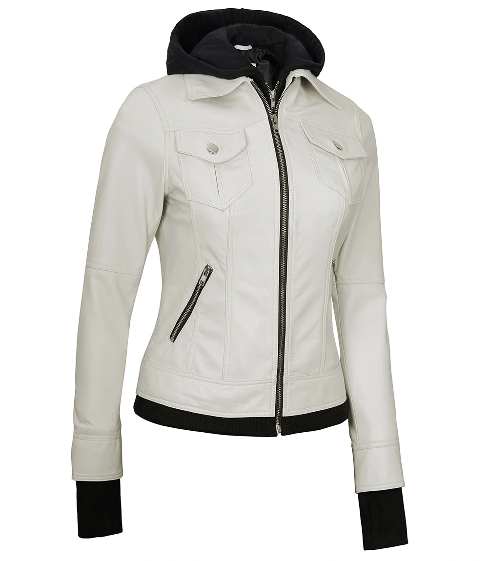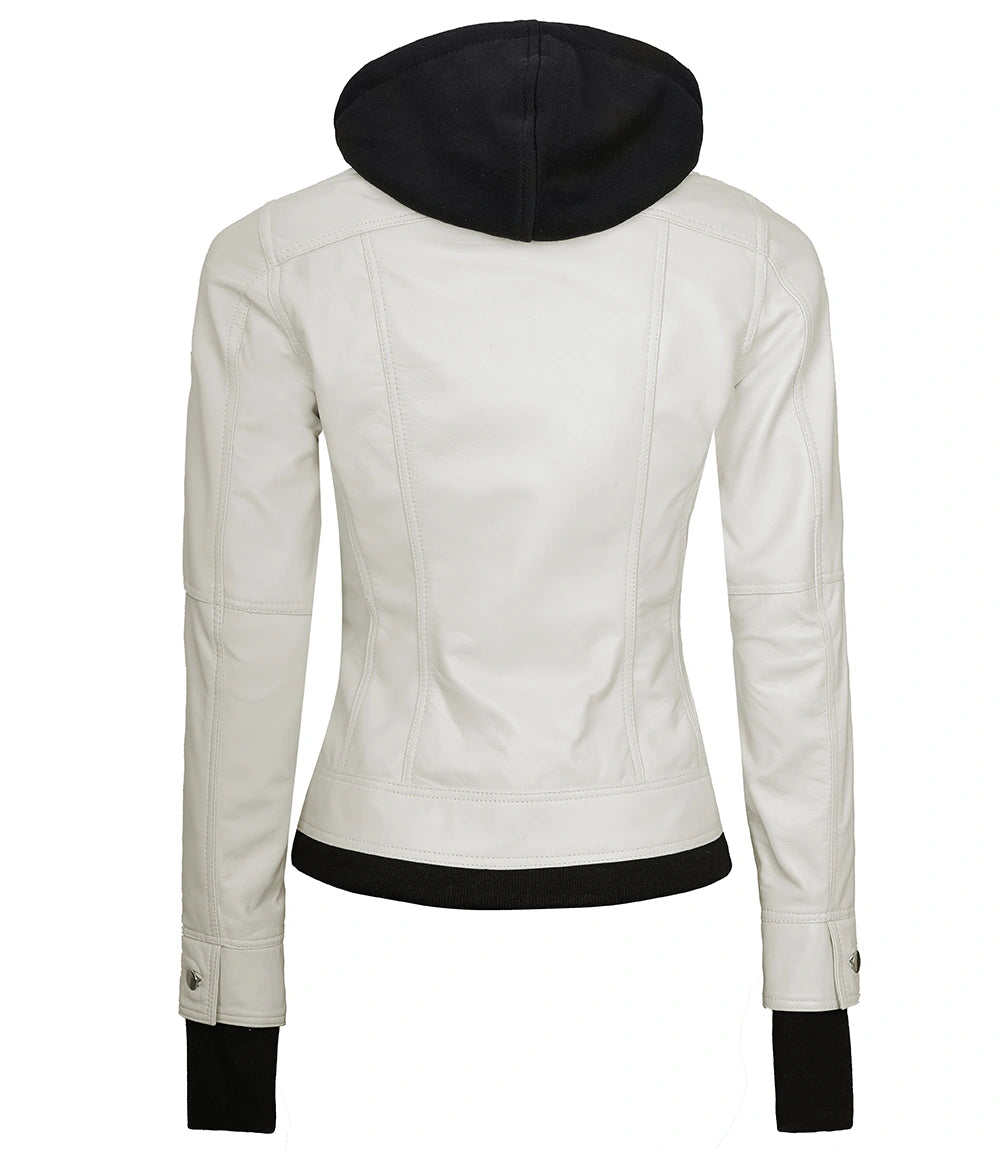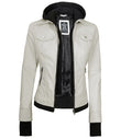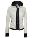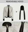 Off-White Hooded Lambskin Leather Jacket with Detachable Hood and Rib-Knit Trim