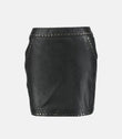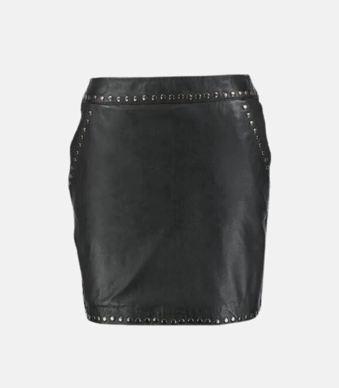 Premium Black Leather Skirt with Stud-Embellished Pockets