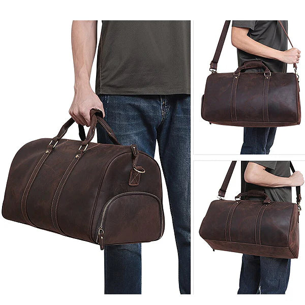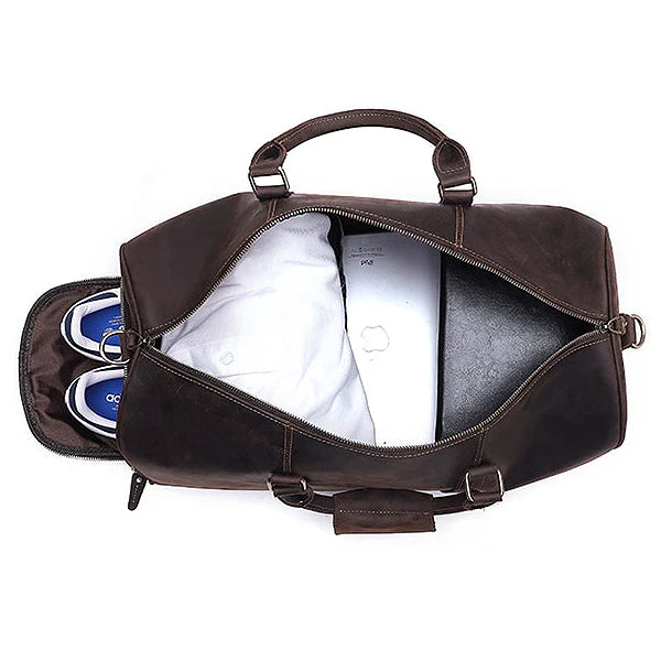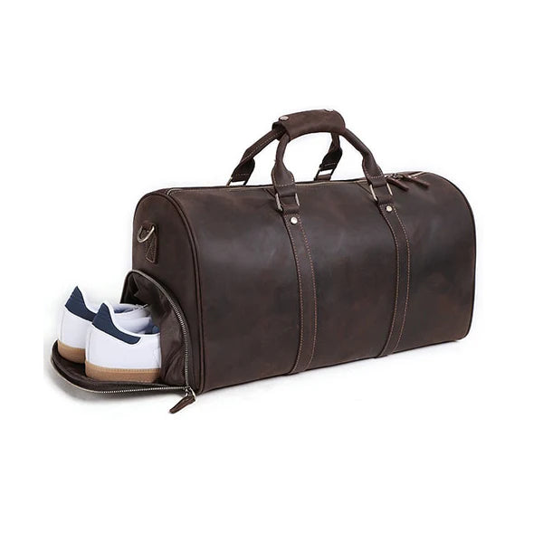 Premium Leather Duffel Bag with Separate Shoe Compartment