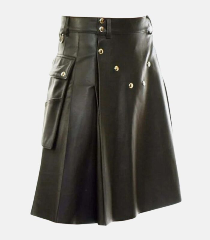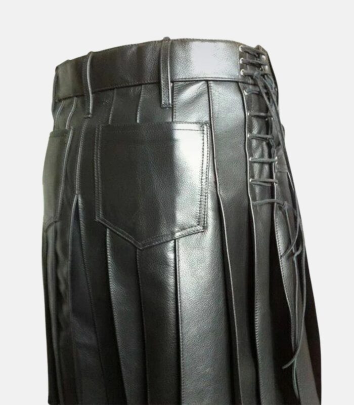 Scottish-Inspired Pleated Leather Kilt with Side Lacing