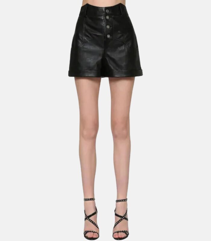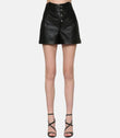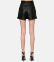 Sheepskin Black Leather Shorts with Button Details