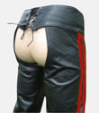 Sleek Black Leather Biker Chaps with Bold Red Stripes