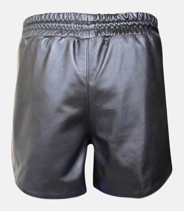 Sleek Black Leather Gym Shorts with Slim Fit and Athletic Design