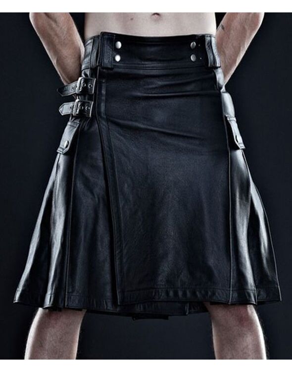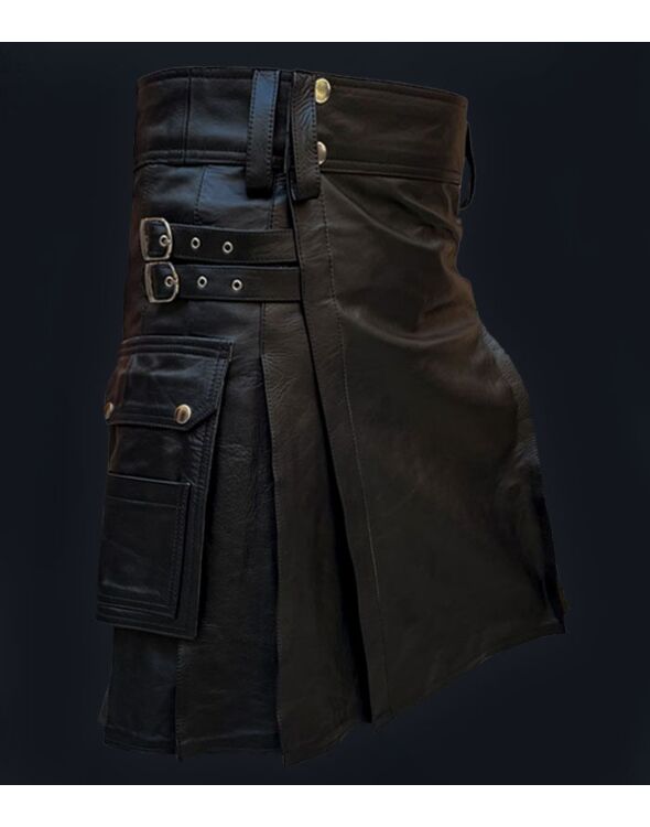 Sleek Black Leather Kilt with Cotton Lining & Adjustable Straps