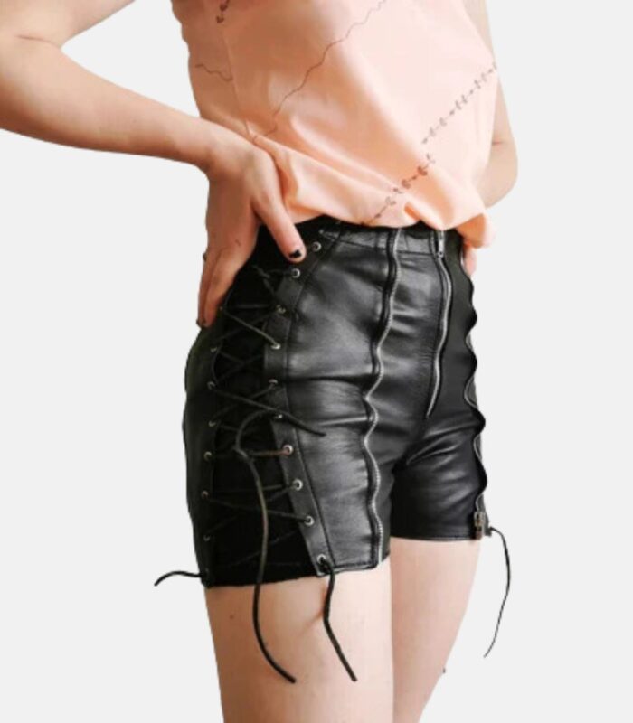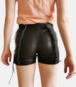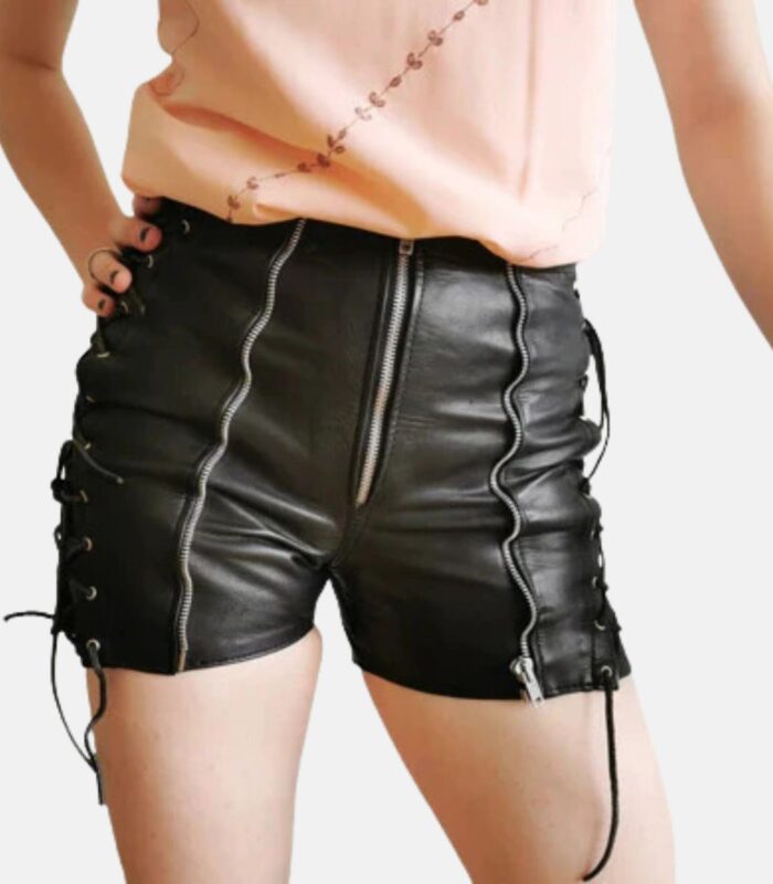 Sleek Black Leather Shorts with Zip & Lace Accents