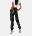 Discover timeless elegance with LETHARA premium Black Leather Trousers. Handcrafted from sheepskin leather, offering a soft, luxurious texture and a modern, slim fit. Perfectly tailored to complement your figure, these trousers are ideal for both casual days and formal nights. With personalized sizing options, they promise a perfect fit every time, making them a versatile and timeless addition to any wardrobe.