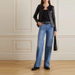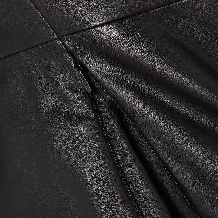 Stretch Cotton Black Leather Shirt with Concealed Zippers