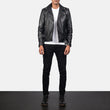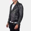 Striker Black Leather Biker Jacket with Zipper closure & waist Belt