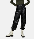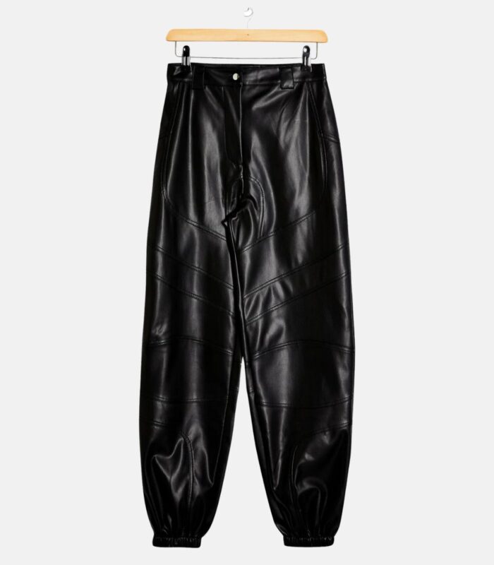 Tailored Black Leather Trousers with Chic Button & Zipper Finish