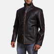 Timberwolf Distressed Brown Leather Jacket with Button Closure