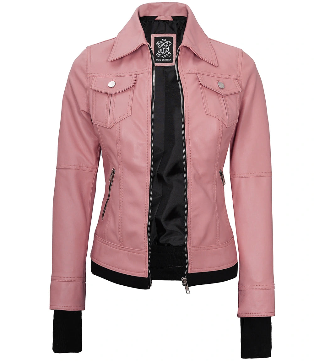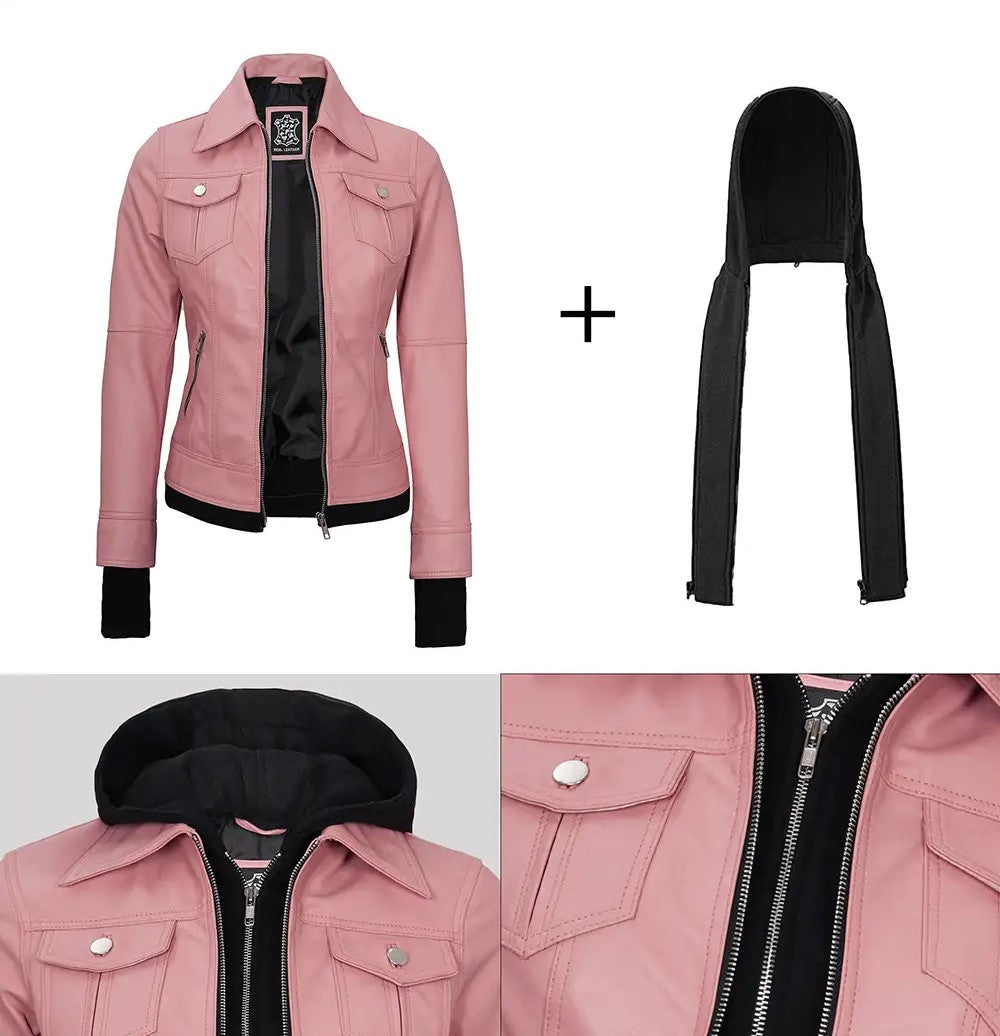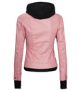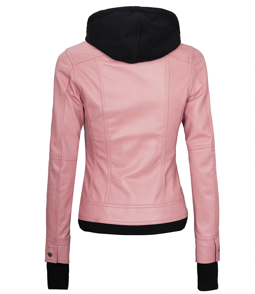 Tralee Pink Hooded Leather Bomber Jacket with Thumbhole Design