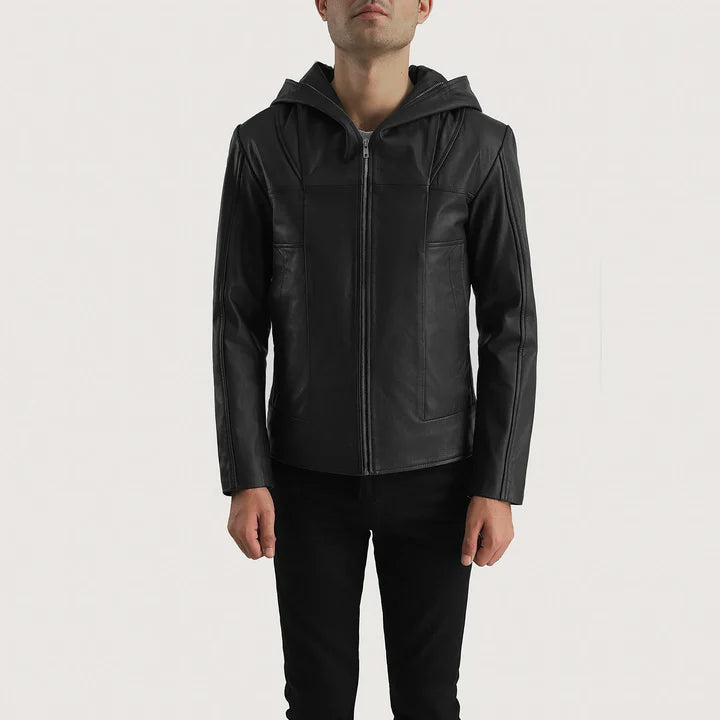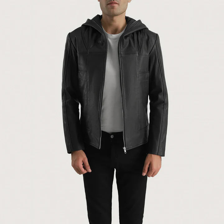Vesper Black Hooded Leather Jacket with Quilted Lining