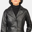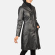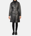 Vesper Black Leather Trench Coat with Notch Collar & Quilted Lining