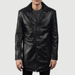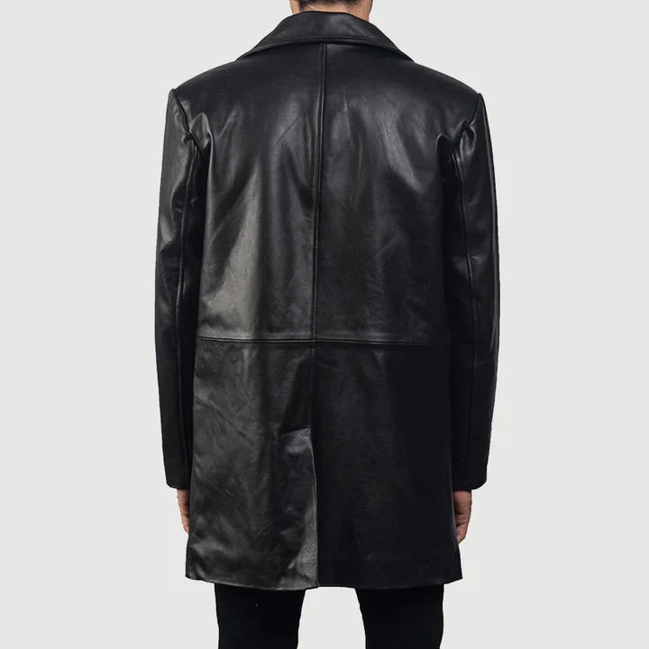 Xavier Black, Notch-Collar Leather Coat with Quilted Viscose Lining
